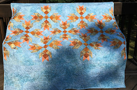 I chose  to donate a lap quilt I made, called Flower Boxes, for the church raffle this coming weekend.  My DH took this photo, not the best, but it is the only one I now have. It is much prettier than the picture indicates. I quilted it this past fall on the Sweet 16 at the art studio using Sally Terry's Leaf designs. I see on her website that she has refined the technique and calls it SHADOW RHYTHMS. I took her class at the AQS show this past August. The technique is very easy to learn and the quilts look great. Click HERE to check out the video on her website for more information. You can find the entire blog post HERE